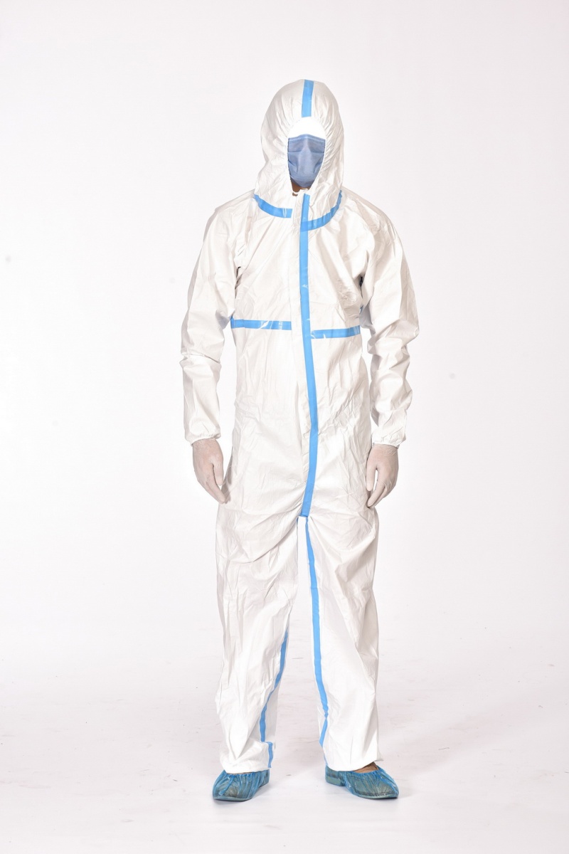 Kombinezon ochronny zabezpiecza przed czynnikami biologicznymi i substancjami chemicznymi, zgodnie z kategorią III odzieży ochronnej, Typ 5B - ochrona przed cząstkami stałymi i 6B - ochrona przed ciekłymi chemikaliami.