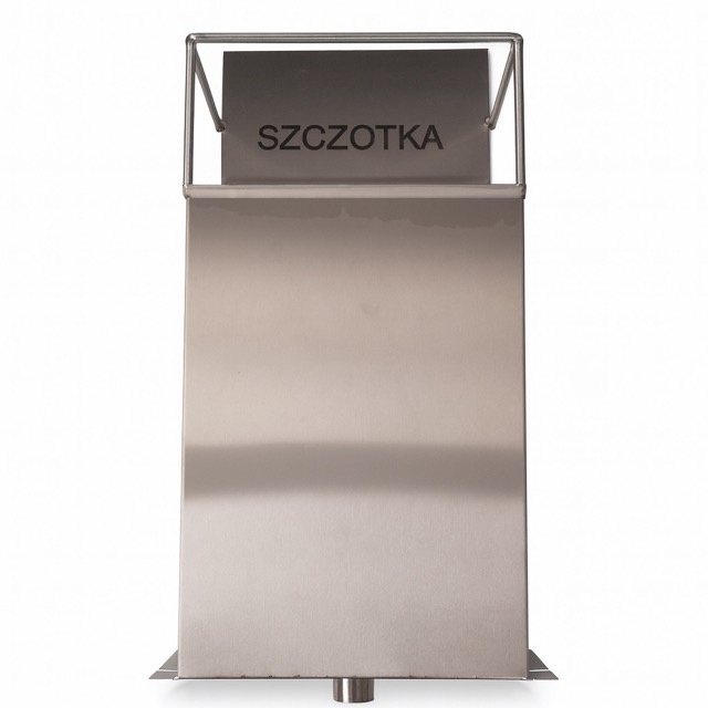 Pojemnik na szczotkę wykonany z wysokiej jakości stali nierdzewnej (INOX), wyposażony w zabezpieczenie przed wypadaniem lancy szczotki oraz okalający pręt Ø10 mm. W zestawie komplet wanienek ze stali nierdzewnej, które utrzymują szczotkę zanurzoną w wodzie i ograniczają przedostawanie się zanieczyszczeń do odpływu.